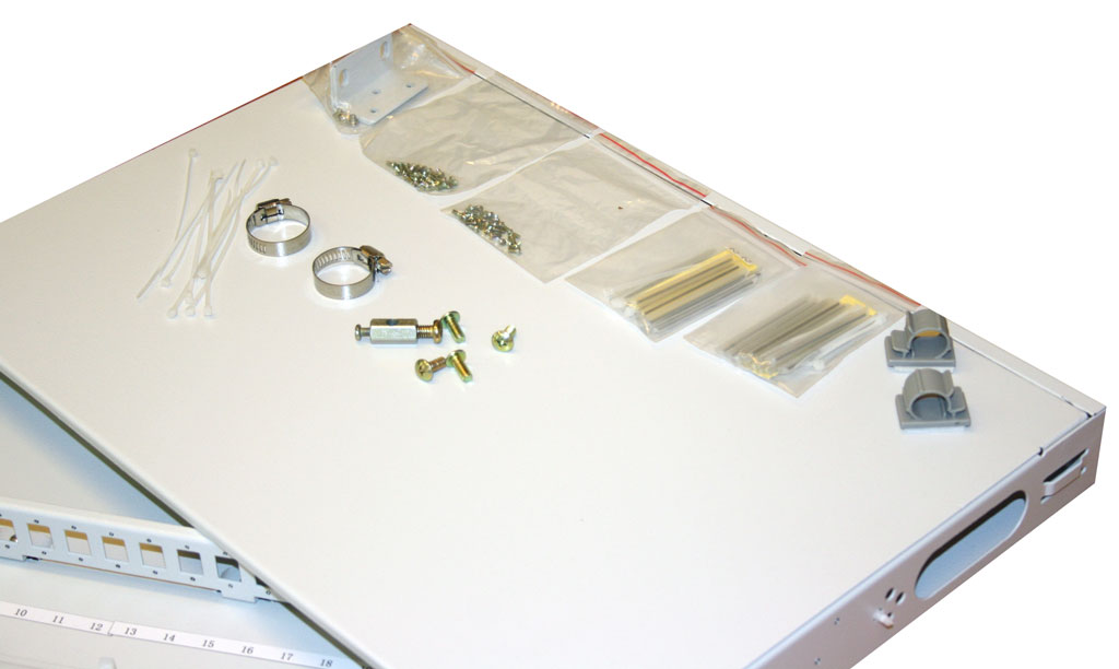 Rozvaděč obsahuje 1 zadní vstup a 2 boční. Součástí je i cable management v přední části rozvaděče pro přehledné uspořádání patchcordů. V ceně rozvaděče je veškeré potřebné vybavení jako jsou kazety, ochrany svárů, trasportní trubičky, šroubky pro uchycení optických spojek.