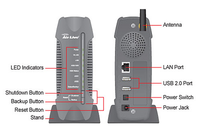 WiFi NAS box, s možností připojení SATA i ATA disku, LAN rozhraním, 2xUSB 2.0. Zařízení podporuje OS Windows 98/ME/NT/2000/XP, Linux, MacOS.Další informace
