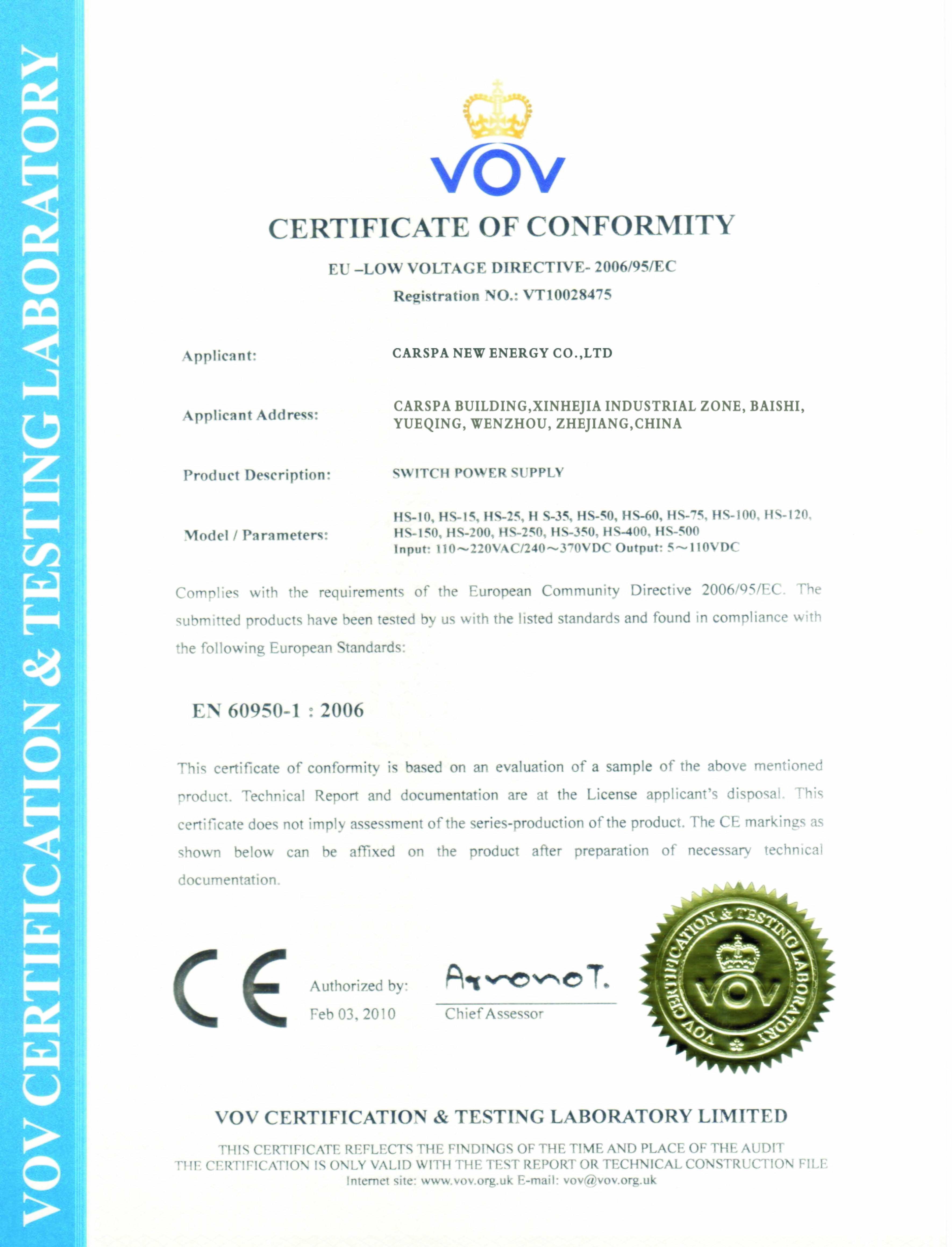 Carspa HS-150/24, Průmyslový spínaný zdroj 24V/6A, 150W