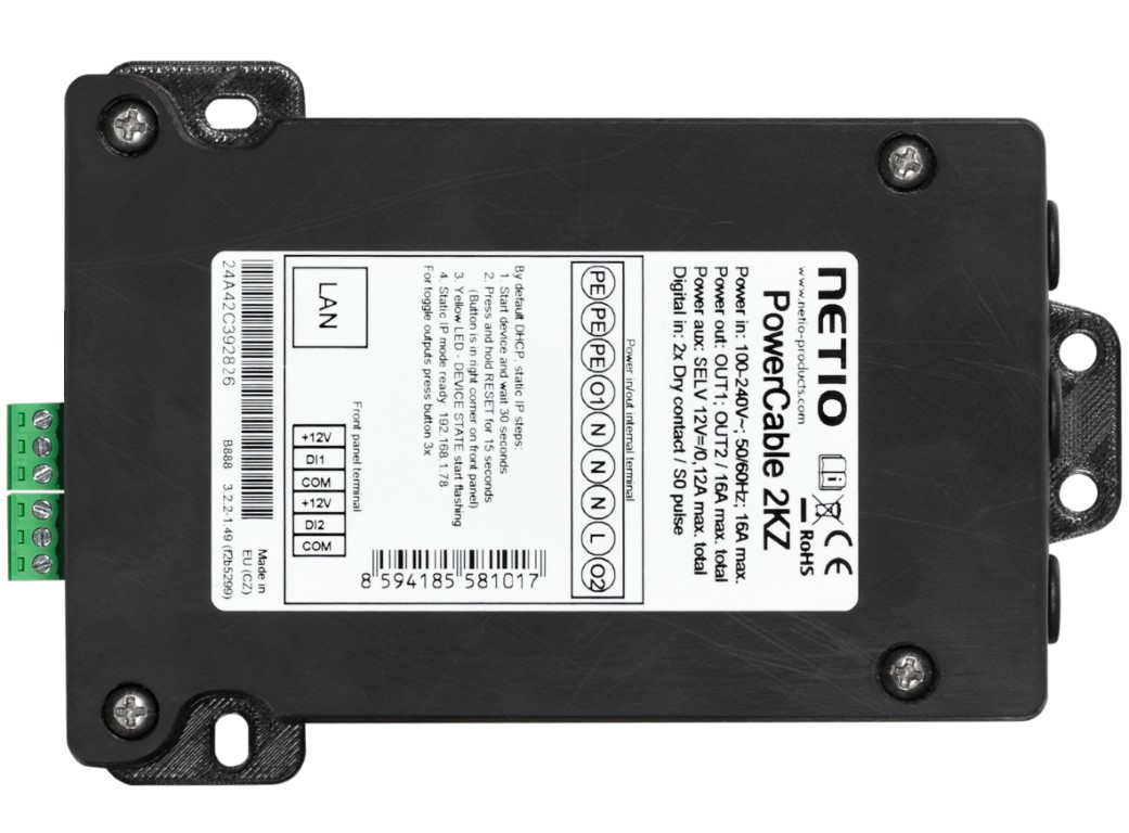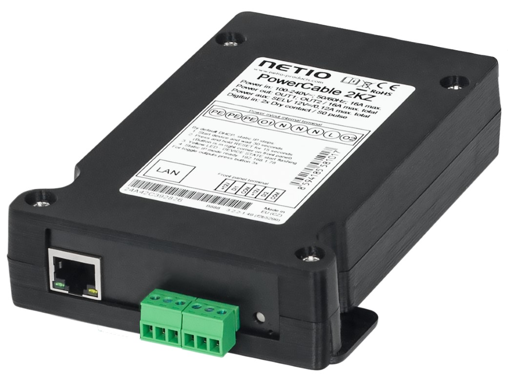 NETIO PowerBOX 2KZ je po LAN a WiFi ovládané chytré PDU se 2 výstupy. Přes web rozhraní produktu lze vypnout a zapnout každý výstup samostatně. Na každém výstupu jsou měřeny elektrické veličiny (A, W, kWh, TPF) s vysokou přesností. Použité materiály a teplotní rozsahy zařízení předurčují pro využití v průmyslových odvětvích. Oba výstupy jsou rozšířeny o DI (digitální vstupy), které lze využít pro připojení pohybových sensorů nebo výstupů S0 měřičů. Díky kompaktním rozměrům lze PDU snadno nainstalovat například za obrazovky, do podhledů stropů či na jiná hůře přístupná místa.