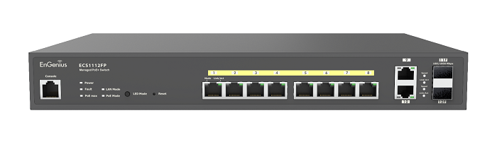 EnGenius ECS1112FP Cloud Managed PoE Switch, 8x GE port, 2x SFP/RJ45