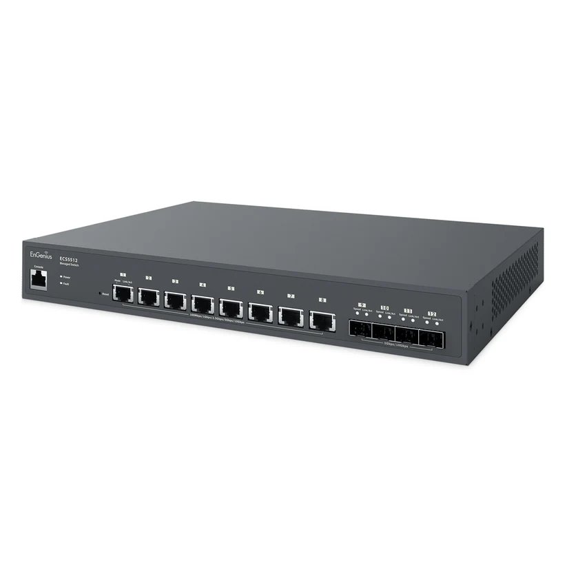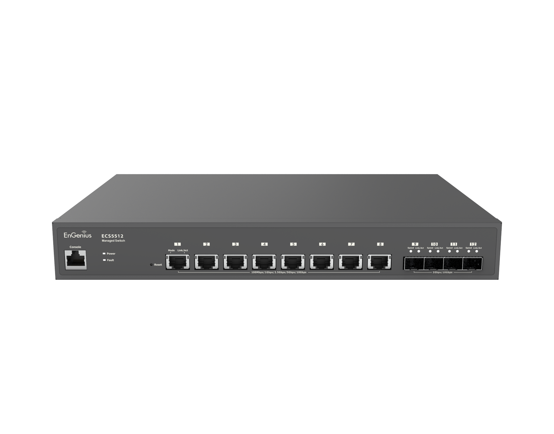 EnGenius ECS5512 je 8-portový 10G switch s centrální cloudovou správou. Je vybaven možností lokální nebo centrální konfigurace, monitorováním a správou sítě a snadno použitelným webovým rozhraním.