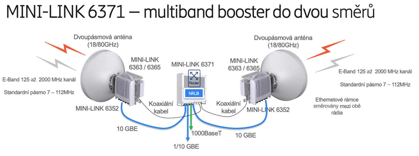 Multiband konfigurace do dvou směrů umožňuje sdružení provozu mezi standardním pásmem na nižší frekvenci a pásmem 80 GHz. Sdružení probíhá na první vrstvě pomocí hRLB a dosahuje kapacity až 10 GBit/s