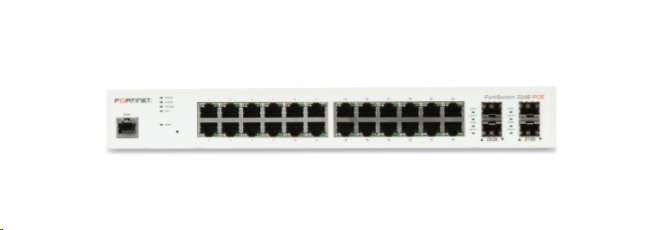 FortiSwitch FS-224E-POE je plně řízený gigabitový Layer 2 switch s 24x GE RJ45 porty , z nichž 12 podporuje PoE+ (standardy 802.3af a 802.3at), a k tomu 4x SFP porty pro uplinkové propojení. Celkový PoE budget je 180 W. Zařízení má přepínací kapacitu 5...Další informace
