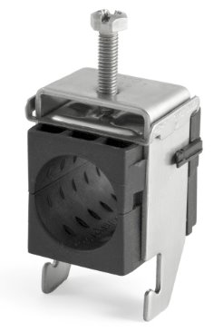 Kabelová příchytka FIMO sRF C 1xLCF 114 (1x39-40mm) slouží pro upevnění vodiče o průměru 39-40 mm (kabely typu RG-8, RG-213, Cat7, apod) na ploché konstrukce - typické využití je pro kabelové svody na telekomunikačních věžích.