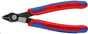 Knipex 7871125 Electronic Super Knips - kleště s přesně broušenými břity bez fazety pro štípání drátů (měkký drát - pr. 0,2-1,6 mm, středně tvrdý drát - pr. 1,2 mm) u povrchu desky. Přesně tvarované hroty kleští dokáží přestřihnout i dráty, ležící na p...Další informace