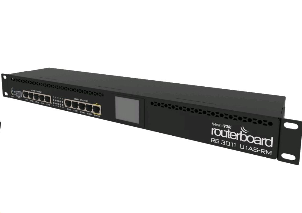 RB3011 poskytuje 10x GLAN, 1x SFP, dotykový LCD displej a plnohodnotné USB 3.0 v plné velikosti pro připojení 3G/4G modemu nebo datového uložiště. Výhodou je možnost instalace do 19" rozvaděče, nízká spotřeba (max. 10 W) a vstupní/výstupní pasivní PoE.
