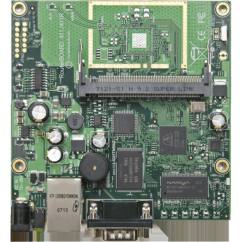 Výkonější verze desky Mikrotik RB-411 obsahuje RouterOS Level 4 a rozšíření paměti na 128 MB.Další informace