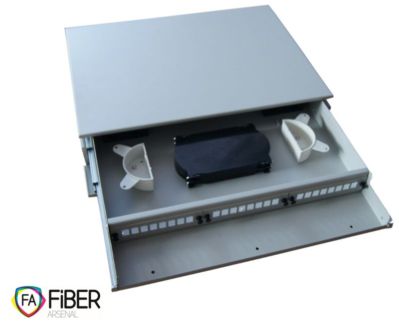 Výsuvná optická vana FA-ODF-RS24A pro 24 SC konektorů simplex, pro montáž do rozvaděče 19"; výška 1,5U; kovové provedení; vč. plastové optické kazety (2x) pro 12 vláken; SC simplex / LC duplex; výsuvná, pro snadnou instalaci a manipulaci s kabely; mont...Další informace