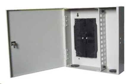 Optický plechový rozvaděč, 1x zámek. Konstrukce: pro max. 48 ks SC simplex spojek. Barva: šedá; Krytí IP65 (vnější prostředí); Obsahuje: 2x optická kazeta pro 24 svárů,; kotvící šrouby; smršťovací trubičky; 8x vstup pro optický kabel. 48x ochrana svárů...