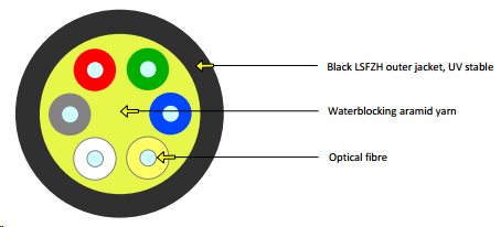 Univerzální optický kabel pro vnitřní i venkovní použití, s možností závesu, LSOH plášť, 16 vláken, singlemode, (SM), 9/125, 7A01, DROP, 3mm, KDP, vlákno OFS Allwave, barva krémováDalší informace