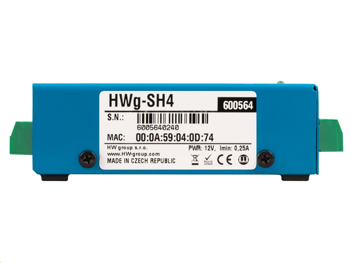 - HWg-SH4 je možné instalovat do 19“ racku samostatně do držáku 1U nebo do sdruženého držáku společně s dalšími produkty HW group