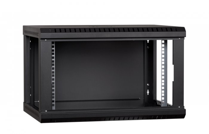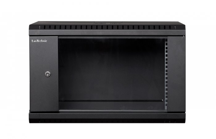 RACK LanTechnic, 19", 6U, 600x450mm, prosklené dveře, nástěnný, jednodílný, černá