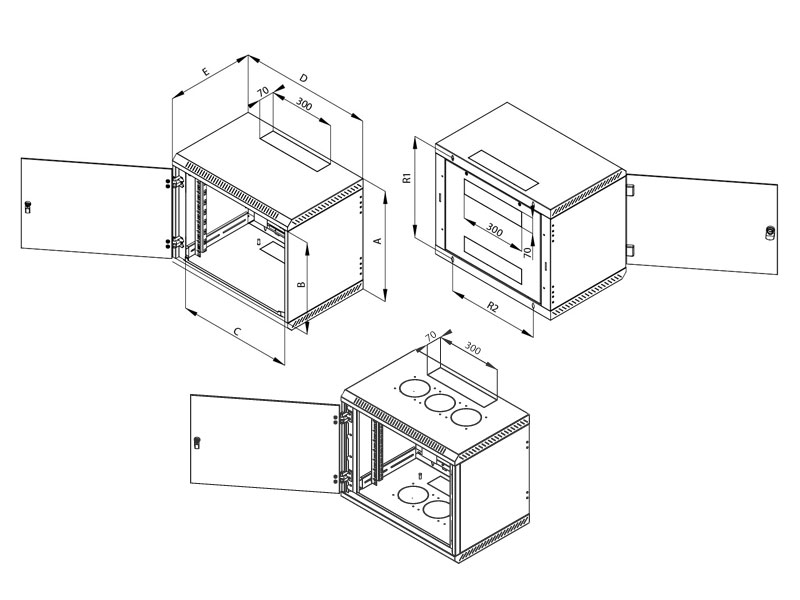 Dveře rozvaděče jsou standardně celoskleněné, ale na přání mohou být i celoplechové anebo s perforací.