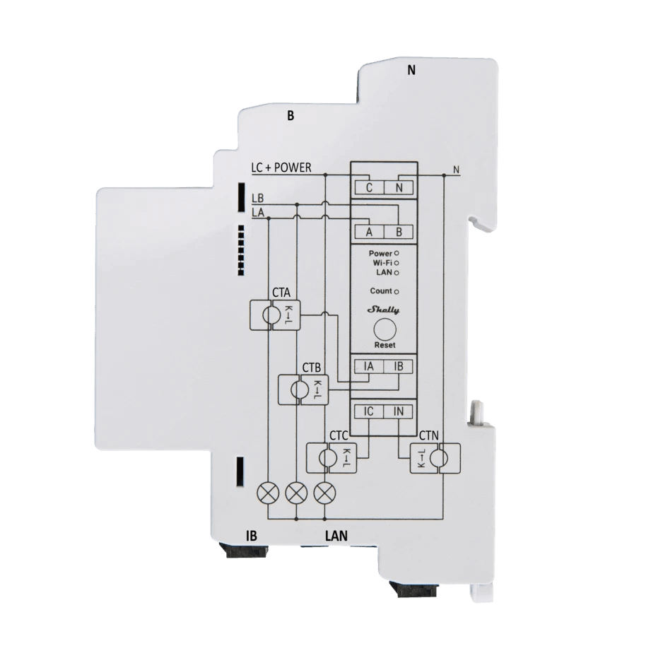 Shelly Pro 3EM je 3fázový elektroměr pro profesionální monitorování spotřeby připojených spotřebičů. Paměť zařízení uchovává měření za polsedních 60 dní s rozlišením 1 minuty pro každou fázi. Přesnost měření je třídy B s odchylkou do 1 %.Další informace