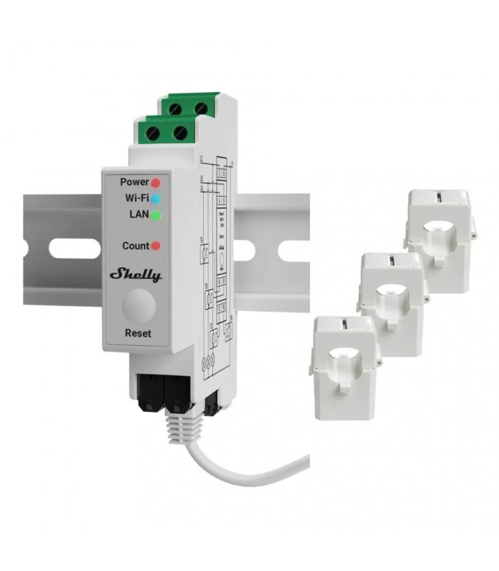 Shelly Pro 3EM je 3fázový elektroměr pro profesionální monitorování spotřeby připojených spotřebičů. Paměť zařízení uchovává měření za posledních 60 dní s rozlišením 1 minuty pro každou fázi. Přesnost měření je třídy B s odchylkou do 1 %. Součástí balení jsou tři 120A svorky. Shelly Pro 3EM má skriptovací funkce (plná podpora mjS) pro vlastní automatizační scénáře založené na externích datech nebo různých událostech. Podporovány jsou také protokoly MQTT, příchozí a odchozí WebSoket, UDP a mTLS.