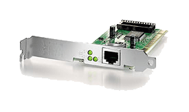 Síťová karta s rozhraním PCI, výstupem typu RJ45 a podporou funkce automatického křížení UTP kabelů.