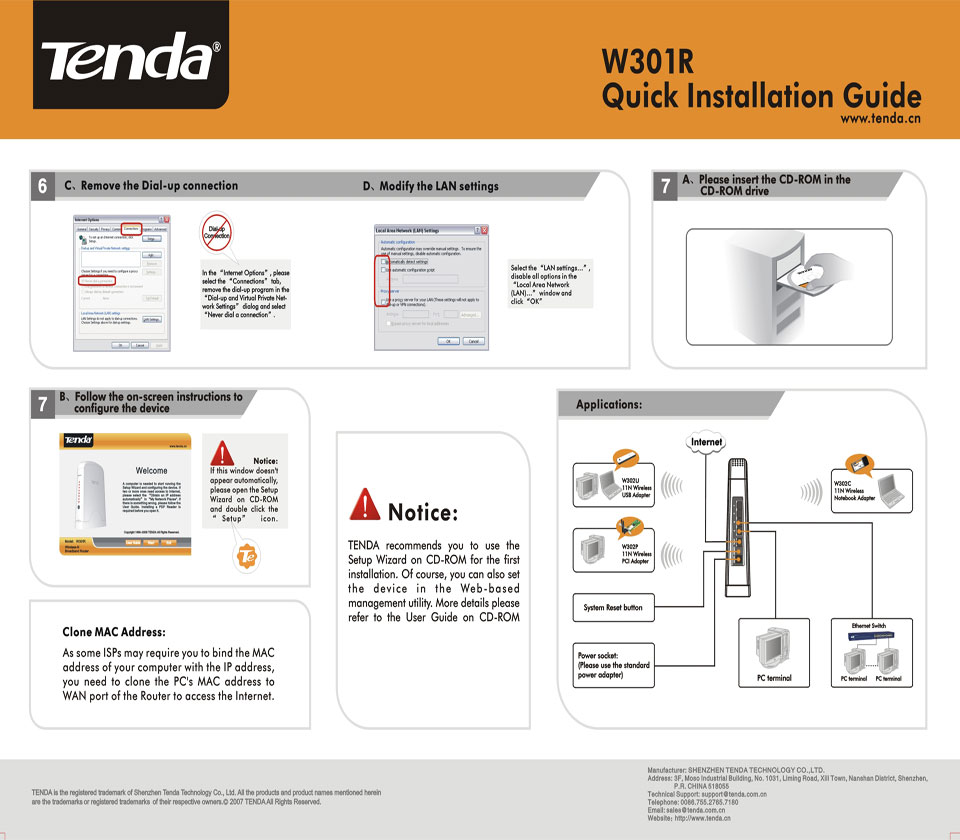 Tenda W301R spojuje router, bezdrátový přístupový bod, čtyř-portový switch a firewall v jednom. Podporuje WDS pro opakování a zesilování signálu, díky čemuž můžete rozšířit pokrytí bezdrátové sítě.