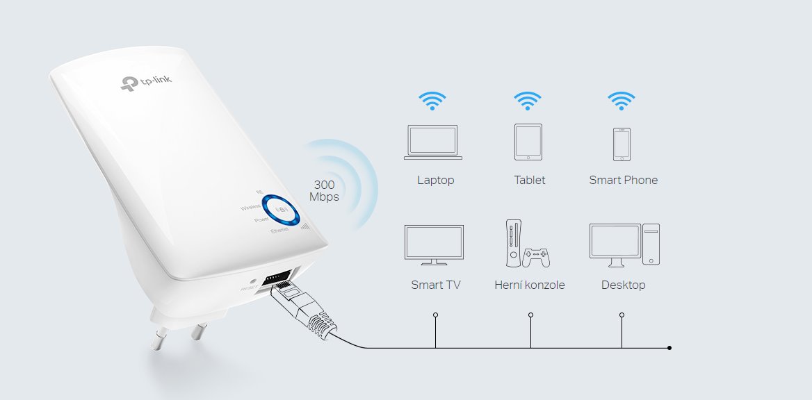 Opakovač signálu TP-LINK TL-WA850RE je určen k rozšíření pokrytí a zlepšení signálu stávající bezdrátové sítě a odstranění „mrtvých zón“. Díky 300 Mbit/s bezdrátové rychlosti N, tlačítku Opakovač signálu, miniaturní velikosti a nástěnné konstrukci neby...Další informace