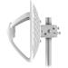 AirFiber 60 je velmi robustní jednotka složená z kovového držáku, síťované parabolické antény se ziskem 38 dBi a 3 plastových nožiček držících zářič obsahující gigabitový ethernetový port s pasivním 48 V napájením a GPS modulem.