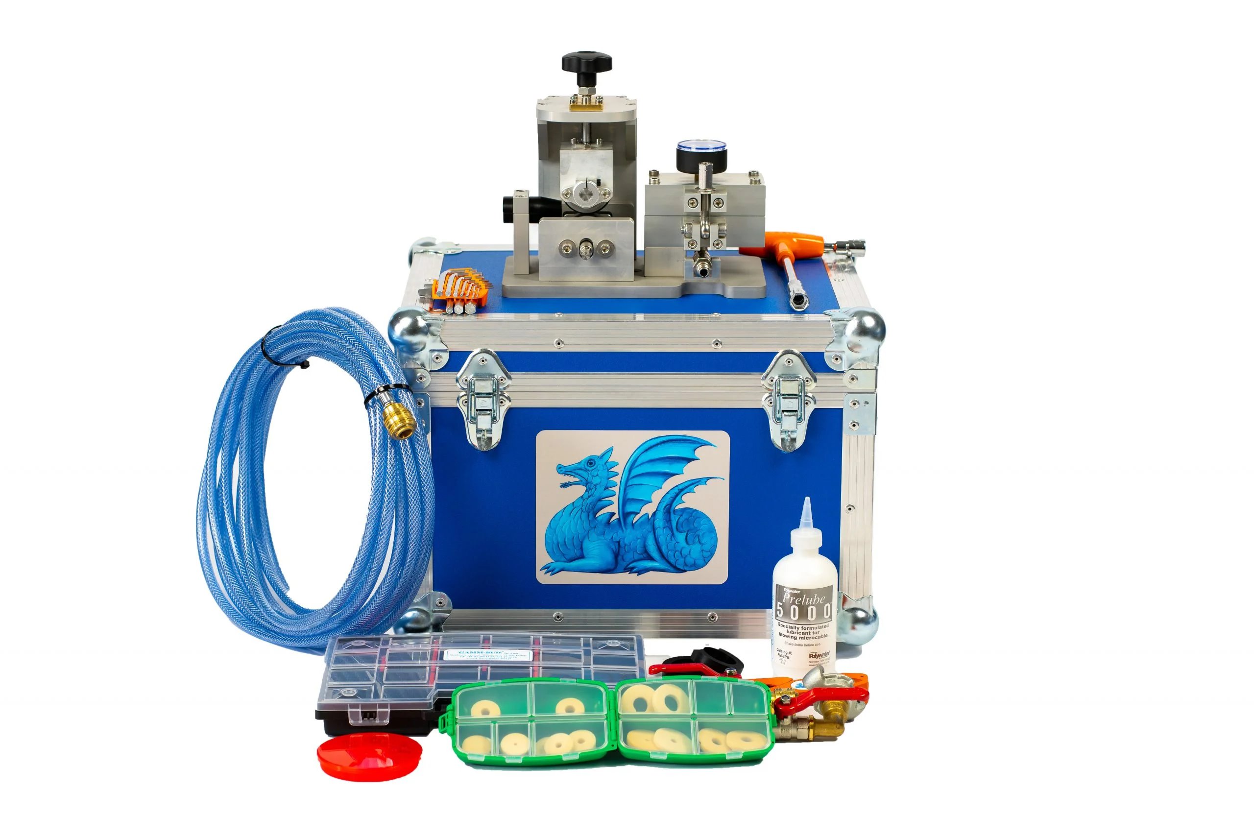 Zafukovačka Blue Dragon Jet MINI je určena k výstavbě poslední míle FTTH sítí. Díky své jednoduchosti a kompaktní konstrukci je velmi snadno ovladatelná. S využitím vyměnitelných kleštin a vstupních redukcí je určena pro zafukování kabelů 0,7 - 10 mm do mikrotrubiček od 5 mm do 16 mm. Konstrukce je uzpůsobena pro možnost vyjmutí neukončeného kabelu