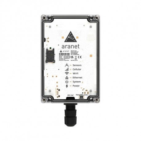 Aranet PRO Plus Base Station je průmyslová základnová stanice pro bezdrátovou síť Aranet, která funguje jako lokální gateway, datový logger a webový server pro až 100 senzorů (dle zakoupené licence) s dosahem až 3 km line-of-sight a podporou integrace do nadřazených systémů pomocí standardních IP protokolů. Varianta Aranet PRO Plus Base Station 12 obsahuje licenci na 12 připojených senzorů.