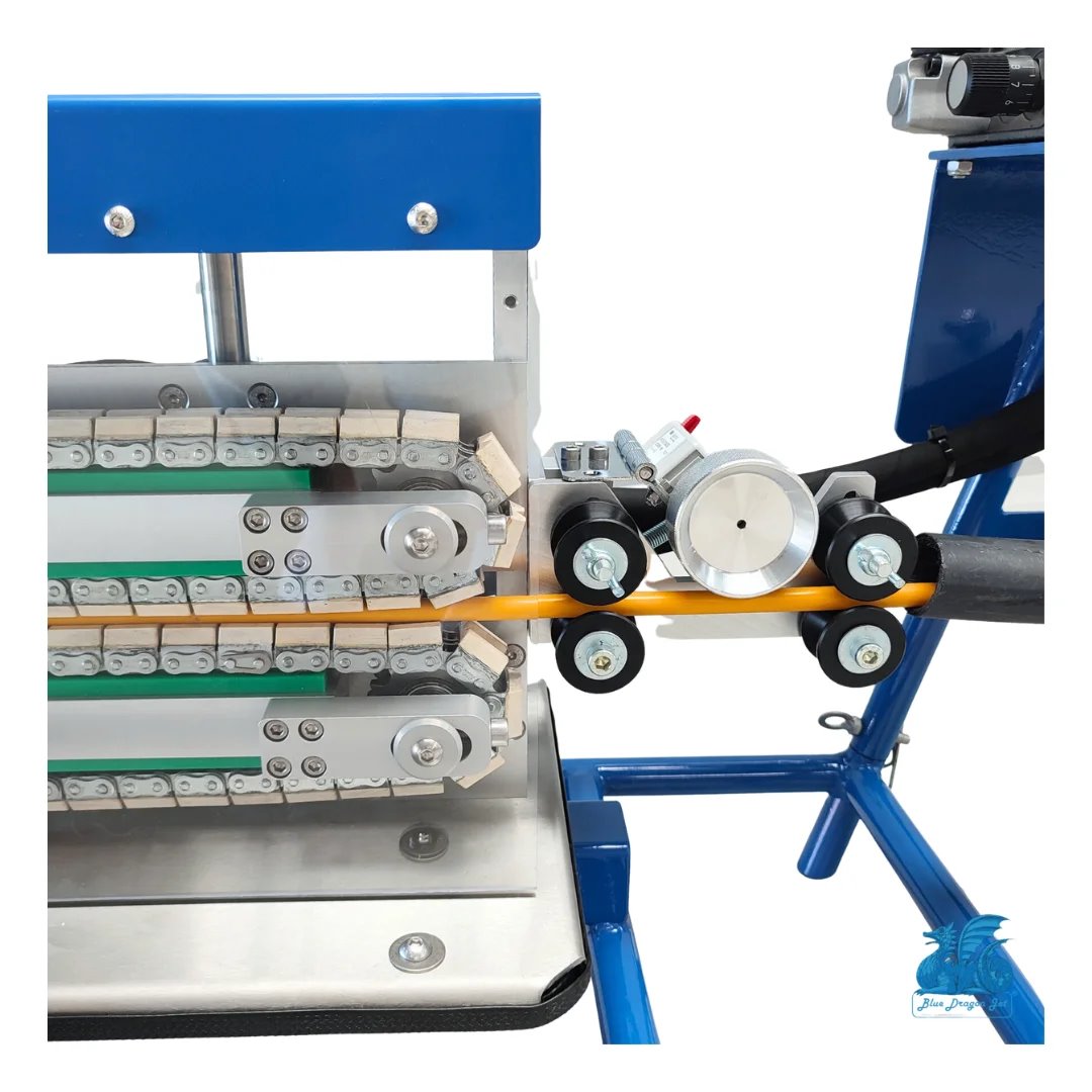 Zatlačovač laminátových per Blue Dragon Jet ROD PUSHER je určen k zatlačování protahovacího laminátového pera do trubky, která je průchozí, ale není způsobilá k standardnímu zafukování kabelů nebo mikrotrubiček. Zatlačovat lze díky výměnným držákům do trubek o rozměrech 32, 40, 50 a 63 mm. Regulovat je možné směr, rychlost i sílu zatlačování, mechanické počítadlo zobrazuje vzdálenost již zatlačeného pera. K bezpečené stabilizaci a zajištění vhodného úhlu nad šachtami, zemními komorami a výkopy je zatlačovač vybaven nastavitelným rozpěrným prvkem.