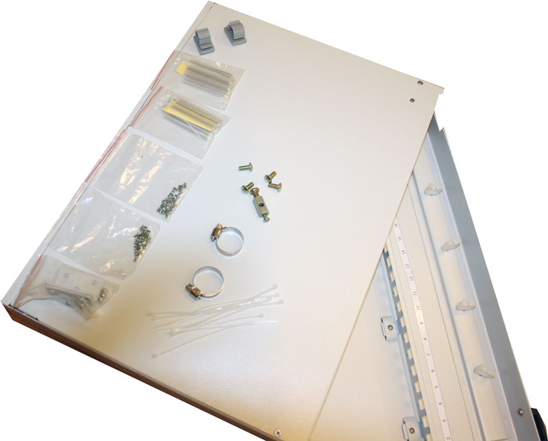 Rozvaděč obsahuje 1 zadní vstup a 2 boční. Součástí je i cable management v přední části rozvaděče pro přehledné uspořádání patchcordů. V ceně rozvaděče je veškeré potřebné vybavení jako jsou kazety, ochrany svárů, trasportní trubičky, šroubky pro uchycení optických spojek.