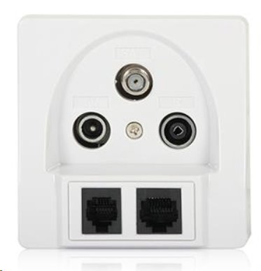 Jedinečná kombinace účastnické zásuvky pro připojení jak k TV/R/SAT, tak i do sítě LAN k internetu a k telefonní lince.