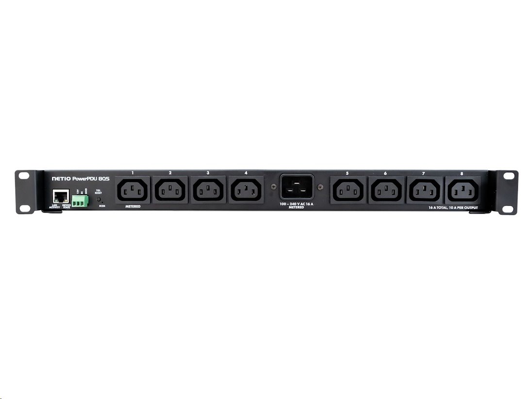 NETIO PowerPDU 8QS je chytré PDU (Power Distribution Unit) s osmi výstupy napájení (8x IEC-320 C13). Každý výstup lze vypnout a zapnout samostatně. PowerPDU 8QS podporuje elektrické měření na dvou kanálech – pro celé PDU (všechny výstupy dohromady) a samostatně první výstup (All Outputs + 1). DI vstup může ovládat výstupy nebo čítat S0 impulsy (výstup z elektroměru).