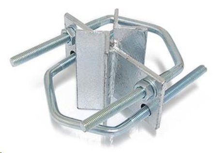 Stožárová spojka pro spojení dvou stožárů. Třmeny lze uchytit na tyče o průměru 25 - 89 mm.