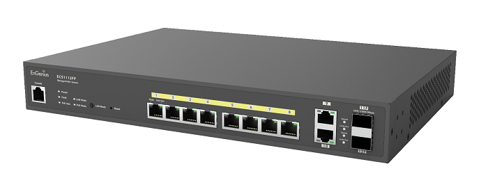 EnGenius ECS1112FP Cloud Managed PoE Switch, 8x GE port, 2x SFP/RJ45