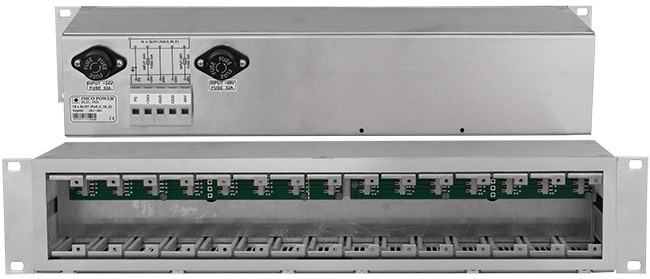 Chassis neobsahuje napájecí zdroj, je určen na připojení už existujícího napájení 24/48 V DC. Disponuje dvěma sběrnicemi s proudovou kapacitou do 32A / sběrnice. Sběrnice jsou rozdělené na 24V a 48V větev. Jsou jištěné tavnými pojistkami umístěnými na zadní straně chassis (24V větev je jištěna na pólu + a 48V větev na pólu -).