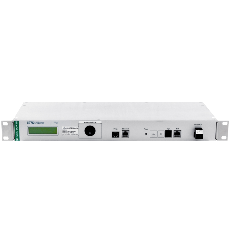 Invertor typu STR2 konvertuje napětí 48V DC (42-60 V) na střídavé napětí 230V~50Hz se sínusovým průběhem. Zařízení disponuje ochranou proti přetížení, podpěti na vstupu, zkratu na výstupu a tepelnou ochranou.