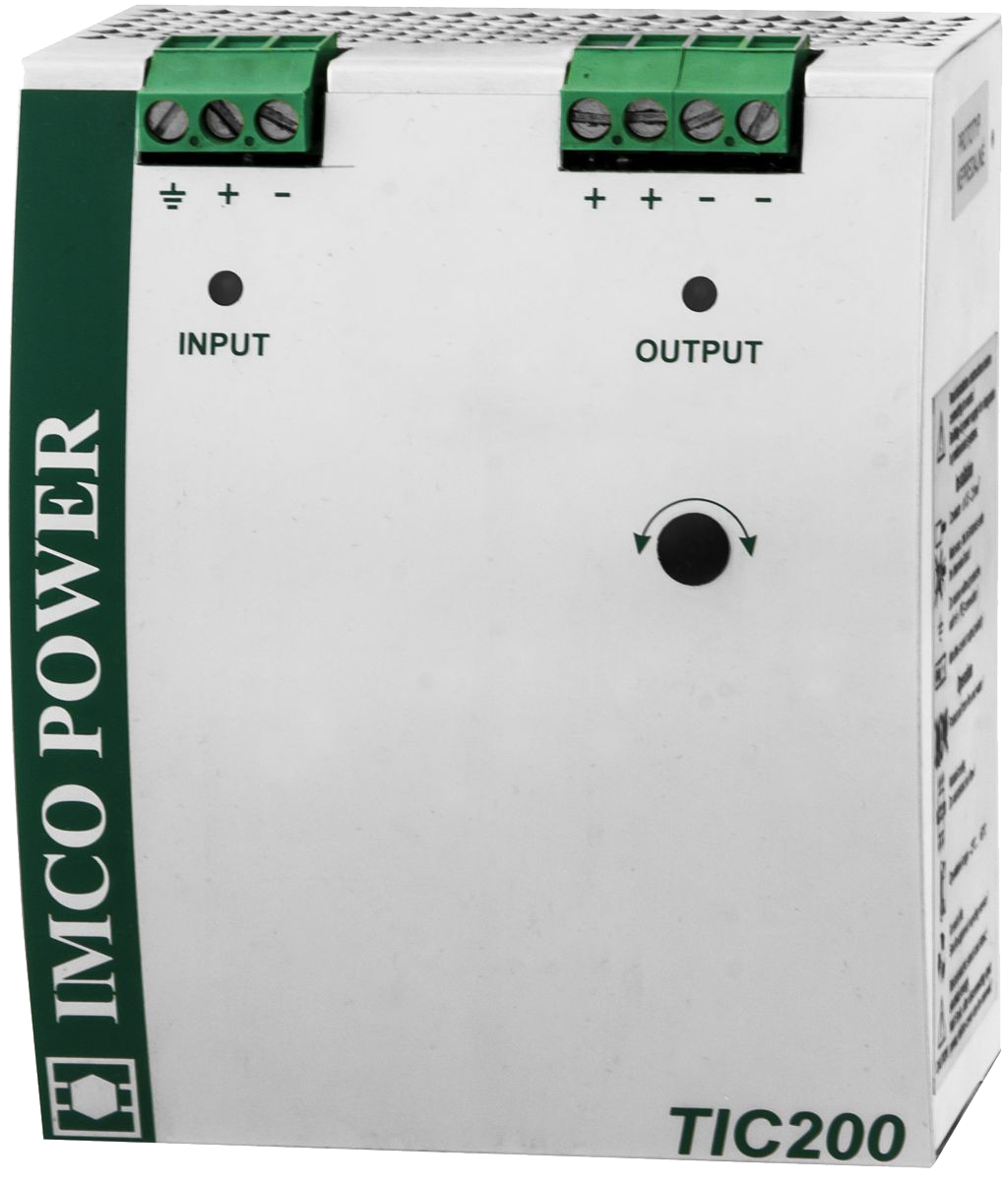 - TIC200.H ZZ_XXYY – H = vyhotovení na DIN lištu, ZZ určuje velikost vstupního napájení, XX určuje velikost výstupního napětí, YY určuje velikost výstupního proudu.