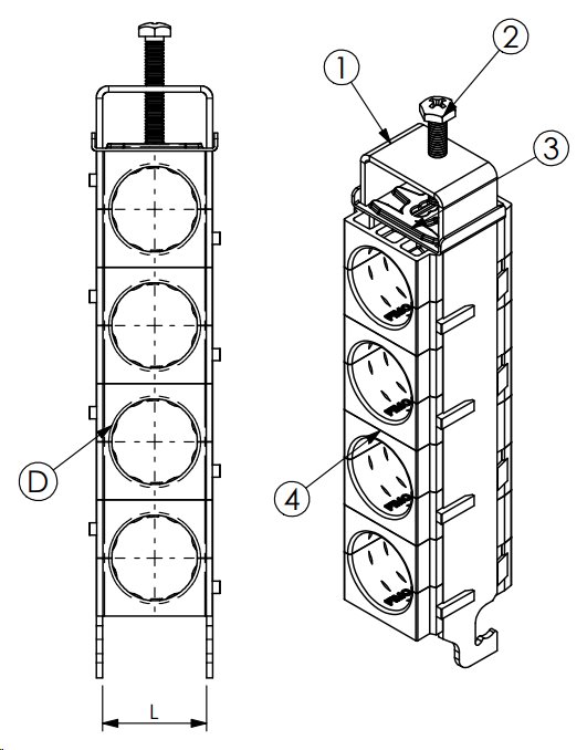 Kabelová příchytka FIMO sRF E 4x LCF 14 (4x10-11mm) slouží pro upevnění čtyř vodičů o průměru 10-11 mm (kabely typu RG-8, RG-213, Cat7, apod) na ploché konstrukce - typické využití je pro kabelové svody na telekomunikačních věžích.Další informace