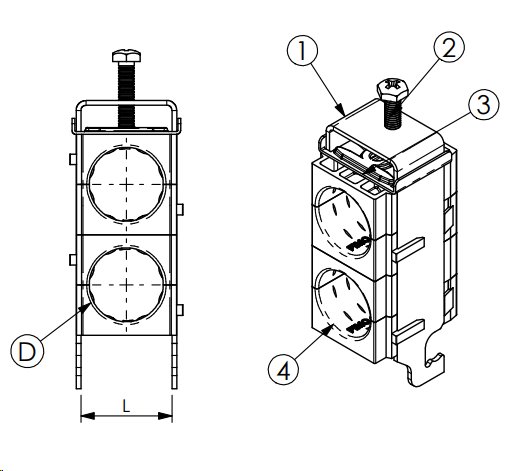Kabelová příchytka FIMO sRF E 2x LCF 14 (2x10-11mm) slouží pro upevnění dvou vodičů o průměru 10-11 mm (kabely typu RG-8, RG-213, Cat7, apod) na ploché konstrukce - typické využití je pro kabelové svody na telekomunikačních věžích.Další informace