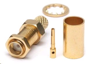 Krimpovací konektor SMA female určený pro kabely H155 a Tri-lan 240, pozlacený.