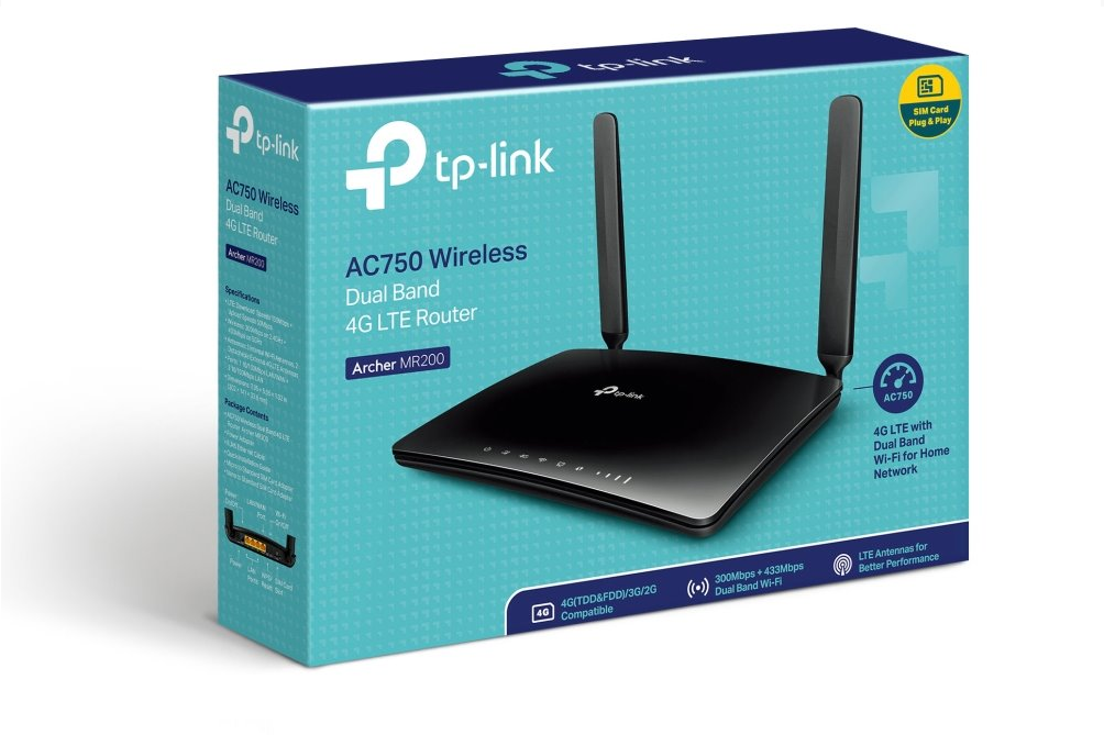 LTE modem TP-Link Archer MR200 s WiFi routerem, AC750, 3x LAN, 1x WAN, 1x slot SIM, 2,4 + 5 GHz