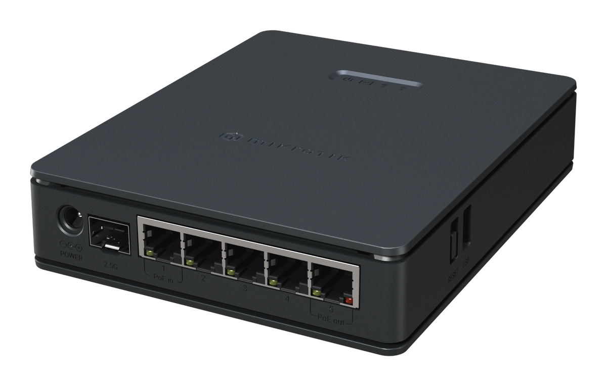 MikroTik hAP ax S je kompaktní WiFi router s podporou nejnovějšího standardu WiFi 6 a triple chain rádiem v pásmu 5 GHz . Dále router nabízí 5x Gigabit Ethernet port pro připojení kabelových zařízení a 1x 2.5G SFP port. Díky modernímu dvoujádrovému pro...Další informace
