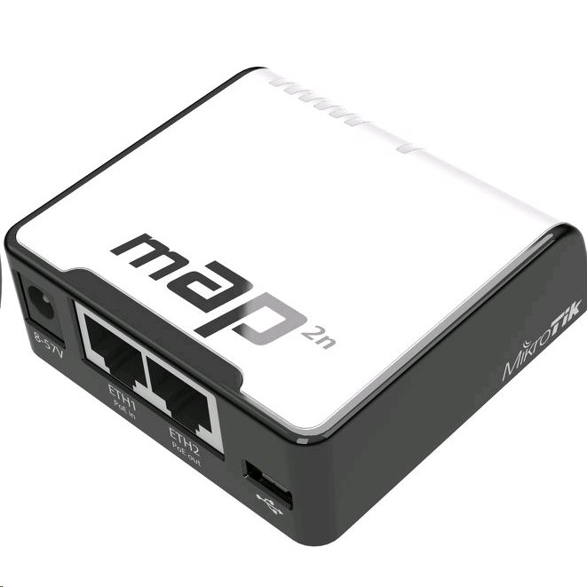 mAP je nejmenší bezdrátový Access Point s plnou podporou RouterOS. Velmi lehce přenosný AP s velmi variabilním napájením - USB, Pasivní PoE, případně power jack. Kromě použití zařízení jako malý a přenosný AP funguje ale také jako PoE injektor - 2.eth ...Další informace