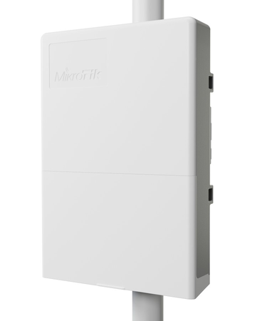 Switch může být napájen pomocí klasického stejnosměrného napájení přes DC jack 18-57 VDC nebo pomocí PoE (aktivní i pasivní 18-57 V). Ochranu proti venkovním vlivům zajišťuje krytí IP54, montáž je možná jak na sloup pomocí dodávaných pásků, tak na zeď.