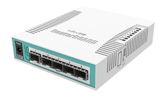 CRS106-1C-5S je velmi malý a levný optický switch/router s plnohodnotným operačním systémem RouterOS, který obsahuje 5x SFP a 1x combo (SFP/ETH) port. Cloud Router Switch je poháněn procesorem QCA8511 taktovaným na 400 MHz, obsahuje 128 MB RAM, 16 MB úložného prostoru, L5 licenci a jeho maximální spotřeba je 11 W