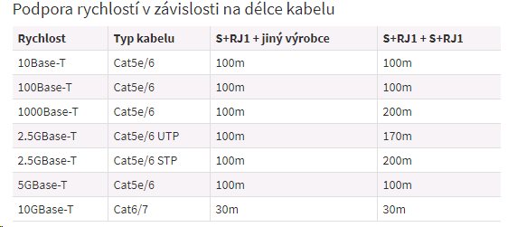 S+RJ10 je unikátní SFP+ modul, který dokáže komunikovat rychlostí 10Mbps až 10Gbps po ethernetovém kabelu. Mezi zajímavosti můžeme zahrnout 1Gbps link až na vzdálenosti 200m při instalaci mezi 2 stejné S+RJ10 moduly. Parametry: Název; Hodnota; Konektor...Další informace