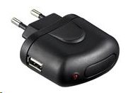 Napájecí a nabíjecí adaptér 230V na USB, 1A, vhodný pro nabíjení nebo napájení mobilních telefonů/mp3 přehrávačů a jiných USB zařízení.