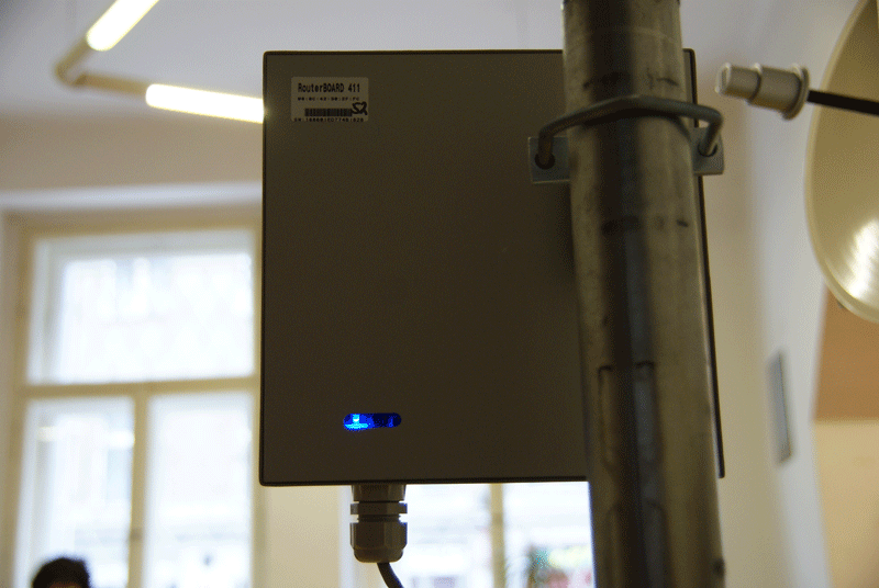 Jednotka je postavena na standardní desce RB-411 s miniPCI kartou Atheros AR5414.