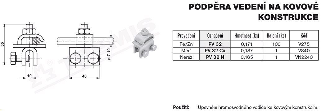 Podpěra pro kabeláž, nebo hromosvodové vedení na rovných a mírně skloněných střechách.Další informace