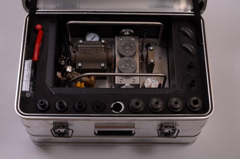 - Dodáváno v ochranném Al kufru, který slouží současně i jako podstavec pro stroj při práci.
