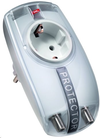 Kombinovaná přepěťová ochrana chrání napájení a anténní vstup televizních, rozhlasových nebo satelitních přijímačů.