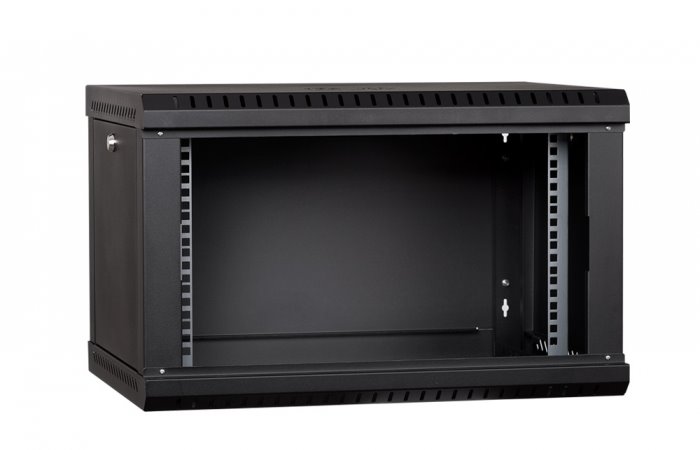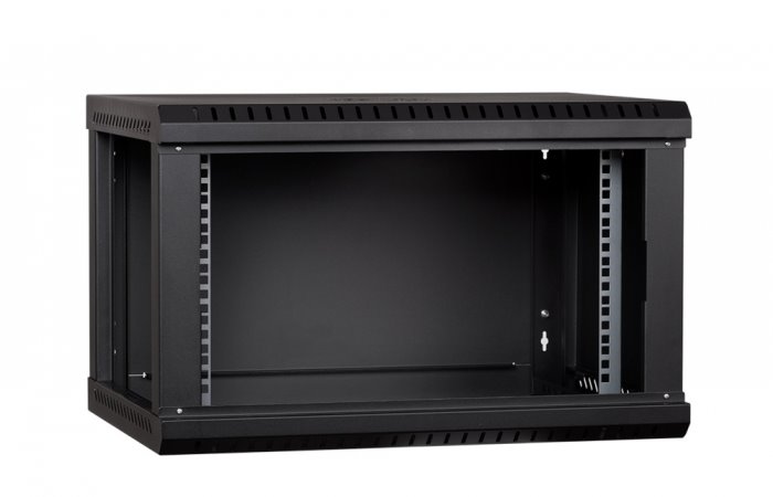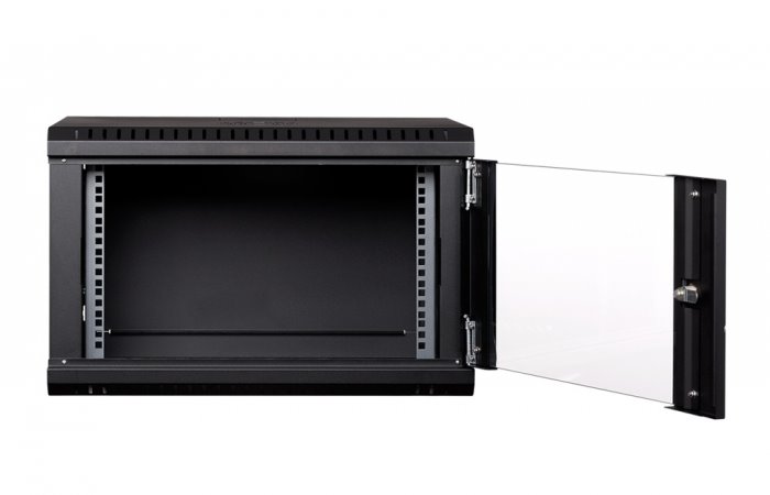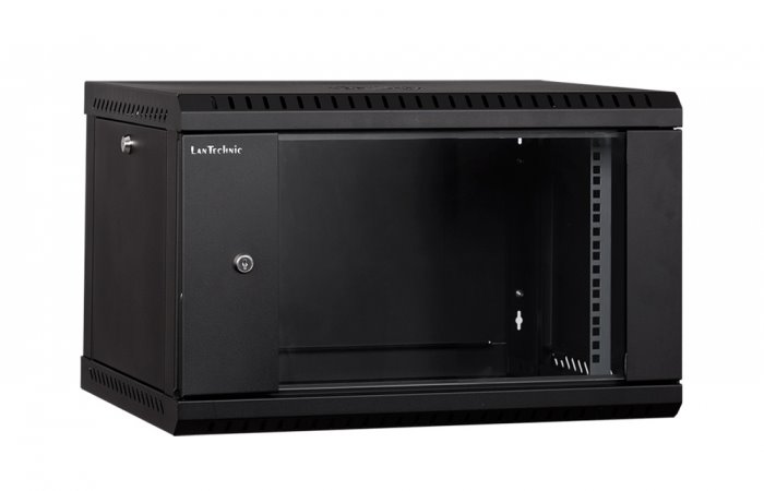 RACK LanTechnic, 19", 6U, 600x450mm, prosklené dveře, nástěnný, jednodílný, černá